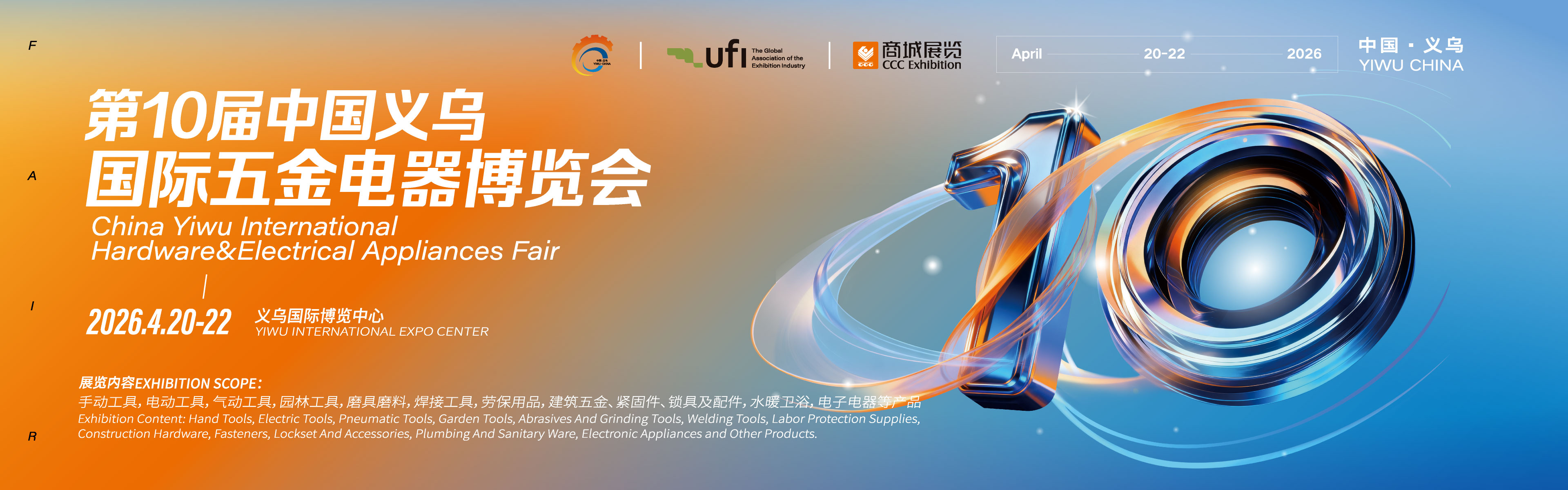 万众期待,如约而至!第10届义乌五金会,将于2026年4月20-22日在义乌国际博览中心隆重举办!为让您轻松逛展、高效对接,我们精心整理了这份观展指南,涵盖展馆、展品、展商、亮点、交通等实用信息,诚邀您共赴五金盛宴,不见不散......