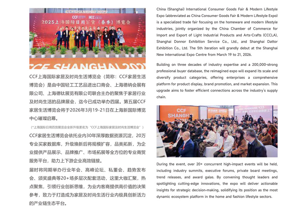 上海国际日用百货展览会全新升级更名为“CCF上海国际家居及时尚生活博览会”