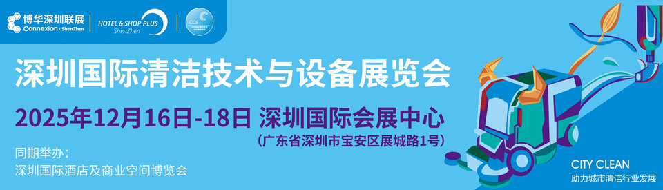 2025年12月16日-18日,深圳国际清洁技术与设备展览会将继续落地深圳,在上海展的基础上,主办方依托博华联展带来的优质观众群及母展Hotel & Shop Plus上海国际酒店及商业空间博览会的优势资源,以粤港澳为核心,辐射华南市场,着力为国内酒店、医院、学校、办公楼宇、景区等商业空间及小区住宅、市政环卫、工业工厂、公共设施提供一站式环境卫生解决方案。