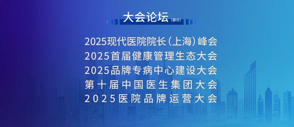 大会将同步举办2025现代医院院长上海峰会、2025专病中心建设大会、第十届中国医生集团联盟大会、2025首届健康管理生态大会、2025上海医疗品牌文化节等系列精彩论坛。