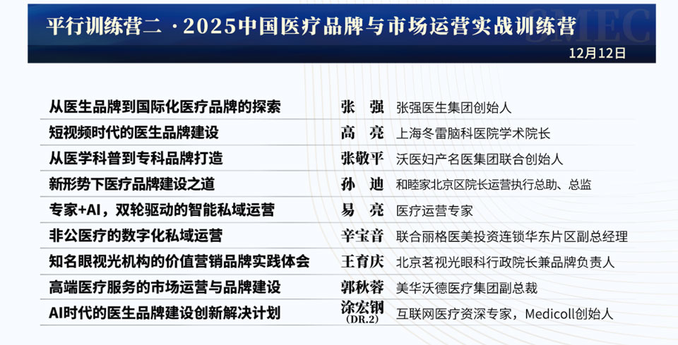 高峰论坛三:2025医院品牌运营大会(12月13-14日)