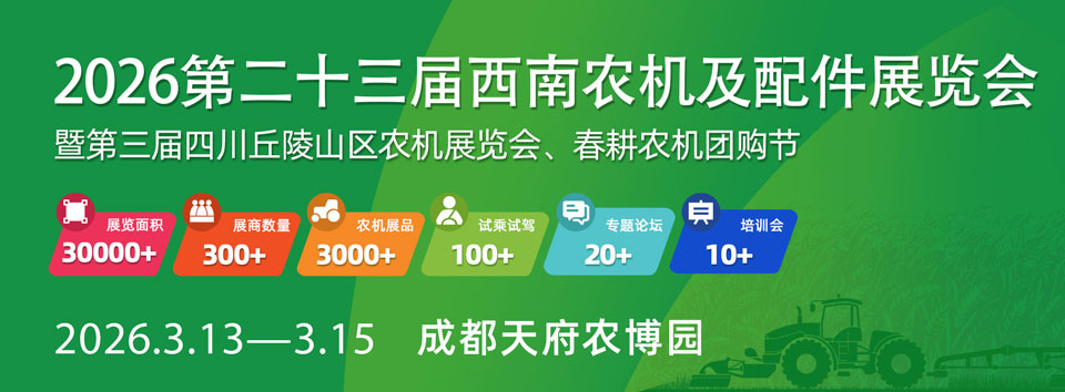推动农机装备高质量发展、老旧农机报废更新、发展智慧农业、拓展技术应用场景,以科技之力促农业繁荣发展。2026第二十三届西南农机及配件展览会暨第三届四川丘陵山区农机展览会、春耕农机团购节将于2026年3月13-15日在成都·中国天府农博园盛大召开。