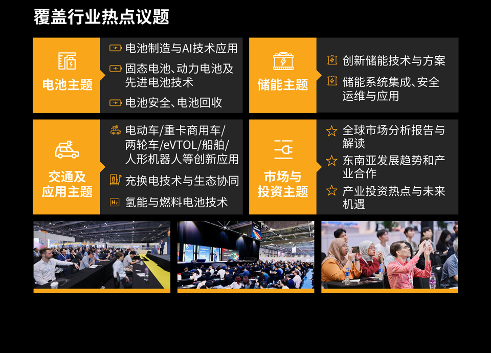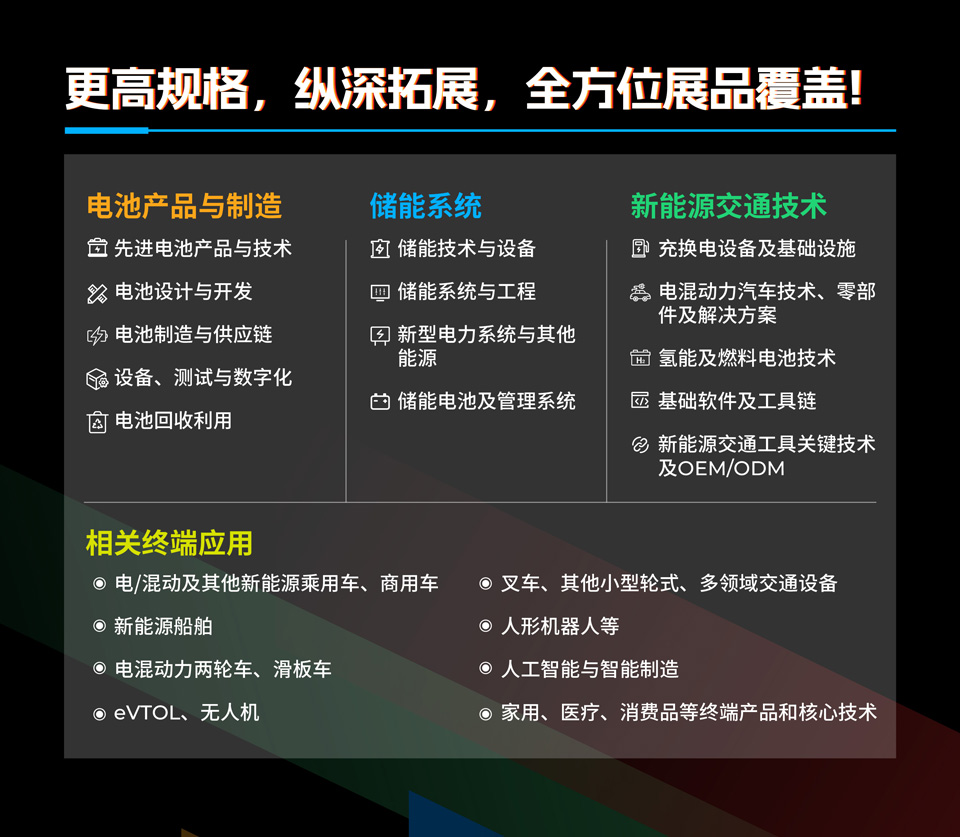 电池产品与制造:先进电池产品与技术、电池设计与开发、电池制造与供应链、设备、测试与数字化、电池回收利用