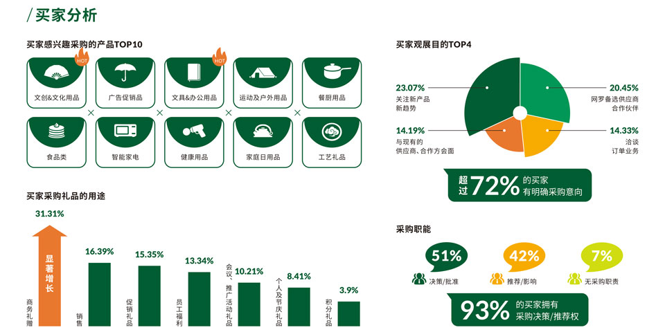 本届上海礼博会围绕消费趋势推出香氛香薰、新锐品牌、设计师品牌及中秋新品四大亮点,精选文创IP、网红家电、3C数码、食品饮料、汽车用品、时尚餐厨、办公文具、纸品家清、促销品、创意礼盒、全球购等10大热门品类,覆盖企业员工福利、积分兑换、商务礼赠、营销物料、办公采购、后勤采购等全场景需求。全年365天线上线下服务终端集团、礼品公司、广告公司、百货商超、连锁零售、电商以及渠道商等专业采购商,提供全品类品牌和优质白牌多元供应链,连接买卖双方,引领行业趋势与创新!