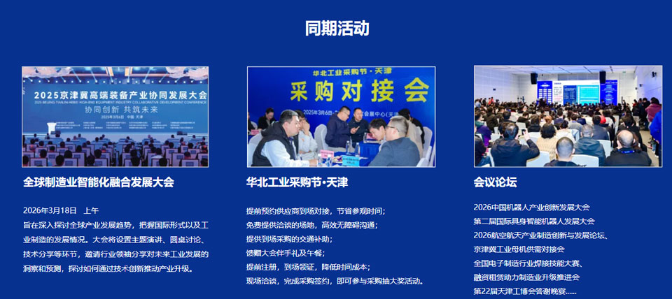 第22届天津机床展,是天津工博会的重要子展,将于2026年3月18-21日在国家会展中心(天津)举办。天津机床展,是国际展览业协会(UFI)认证的国际品牌展会,立足中国先进制造研发基地——天津,展出面积近100,000平方米,服务我国工业装备产业发展,历经20载口碑积累,汇集全球范围内机床领域的数字化、智能化、信息化创新成果,吸引了蒂德精机、丽驰、程泰、绮发、津上、山崎马扎克、国盛、亿晋、东刚、宝锋、大金等知名品牌参展,获得了政府机构、行业商协会、参展企业及买家用户等合作伙伴的一致好评,充分展示了展会对产业发展、工业升级的正向推动作用。