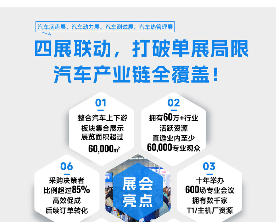 2026年,ATC汽车底盘展规模全面升级,展览面积超40,000㎡,汇聚600+参展商与40,000+专业观众。展品覆盖制动、悬架、转向、智能底盘、底盘轻量化、生产制造等关键领域,全景呈现底盘技术的前沿突破与落地应用。