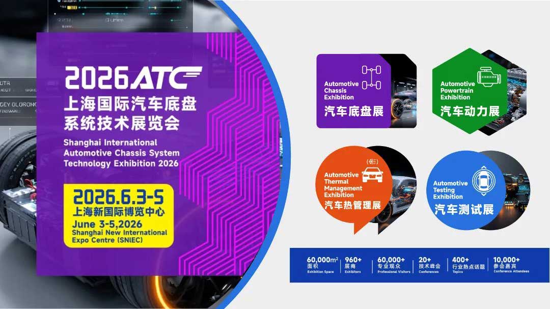 2026ATC上海国际汽车底盘系统技术展览会(以下简称“ATC汽车底盘展”),将于2026年6月3-5日移师上海新国际博览中心盛大举办!作为亚洲优质的汽车底盘系统专业展览,ATC底盘展历经十年积淀,携手汽车测试展,汽车动力展,汽车热管理展,共同打造汽车核心技术生态的一站式对接平台。