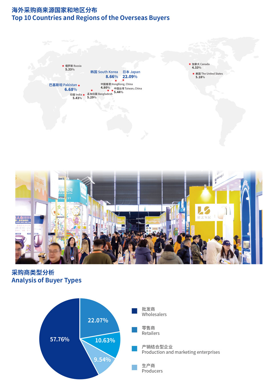 跨境电商专区:信息咨询、物流存储、供应链、代运营、跨境营销、运营管理系统、支付平台、教育培训、人才招聘、保险、知识产权、法律咨询、商标注册、B2B/B2C跨境电商平台、海内外零售电商、跨境电商产业园区/综试区、 招商政策/项目推荐、投资环境展示、直播平台/设备/配套部件、大数据、人工智能和云计算、跨境电商协会、独立站、专业媒体等;