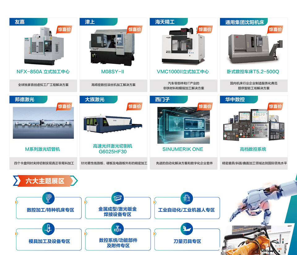金属切削/数控机床、金属成形/锻压冲压、激光智能制造、模具及配件、工业自动化/机器人、刀具附件/功能部件;