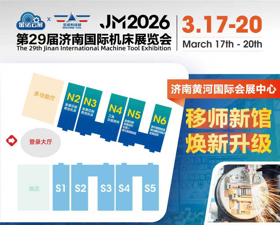 2026第29届济南国际机床展定于3月17-20日在济南黄河国际会展中心举办,展会面积10万平米,启用六大展馆,展出范围涉及金属切削、数控机床、锻压冲压金属成形、激光钣金智能制造、刀具模具及功能配件、工业自动化机器人等,千余家专业展商汇集提供机加工行业一站式解决方案,同期开设行业论坛、海内外贸易对接会等。