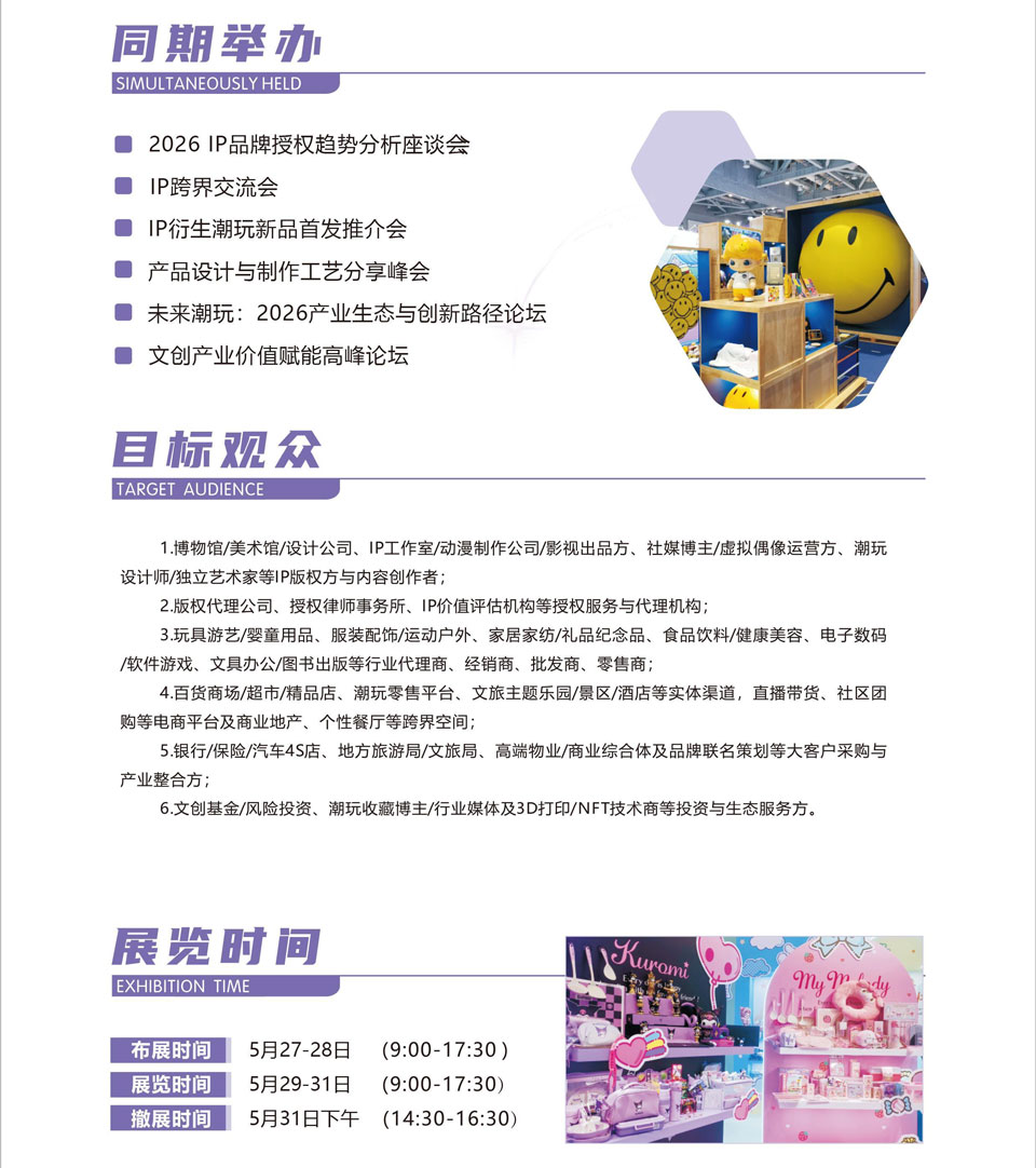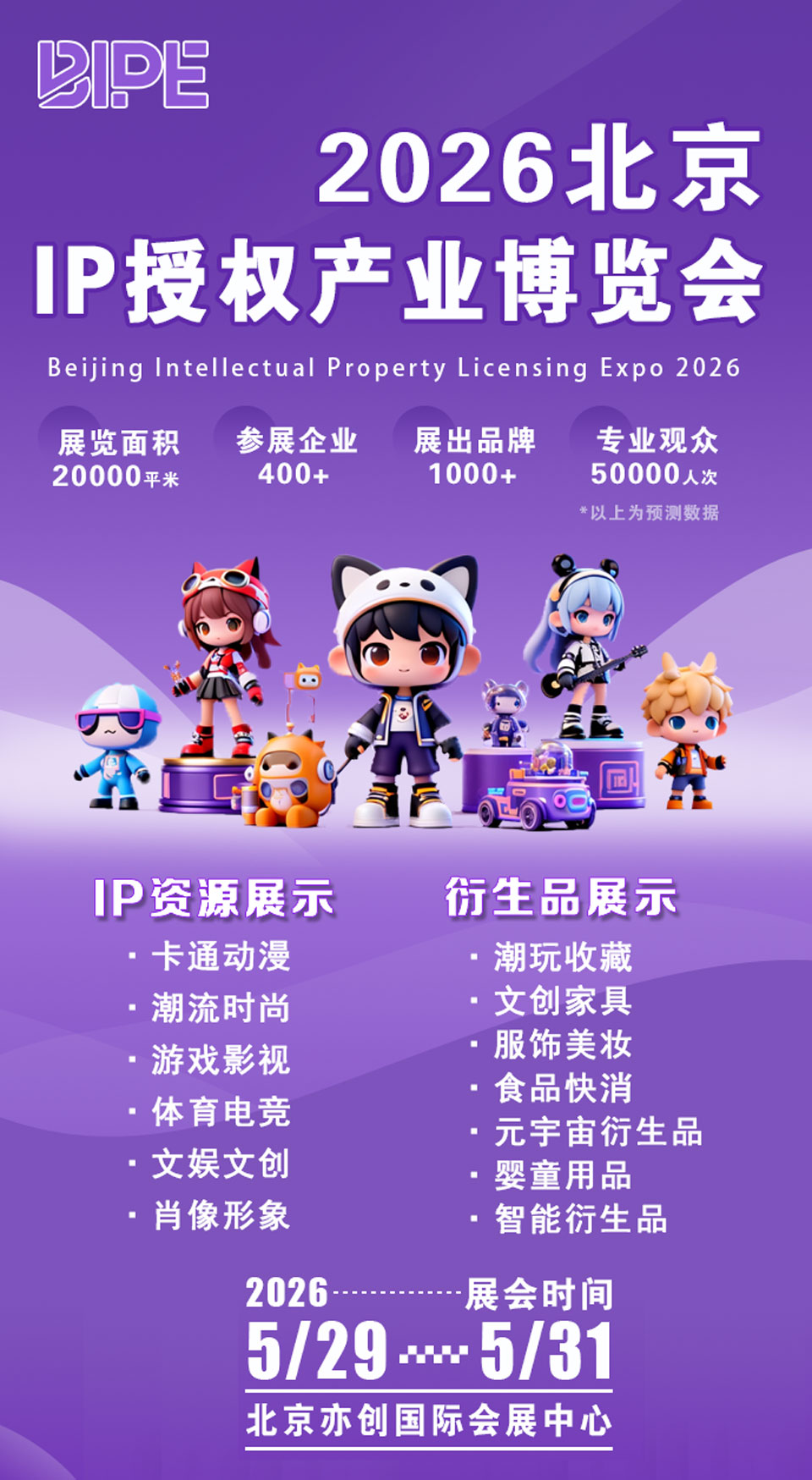 2026年5月29-31日,2026北京IP授权生态产业博览会将于北京亦创国际会展中心举办,本届展会以“IP赋能·跨界共生”为主题,立足首都战略高地,填补北方产业生态空白,连接IP版权方与制造、零售企业的深度对接平台,打造“授权方-代理方-被授权方”全链路闭环,破解产业链分散困局,一站式聚合趋势洞察、资源对接、新品发布、渠道拓展与商务合作,引领IP经济创新发展浪潮。