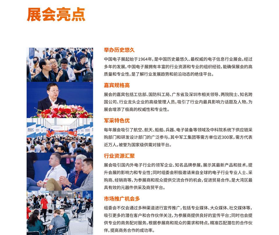全国特种电子元器件:核心高端基础元器件展区、特种集成电路展区、电子工艺材料及测试设备展区、高校产学研专区、自主创新示范区、新品发布区;