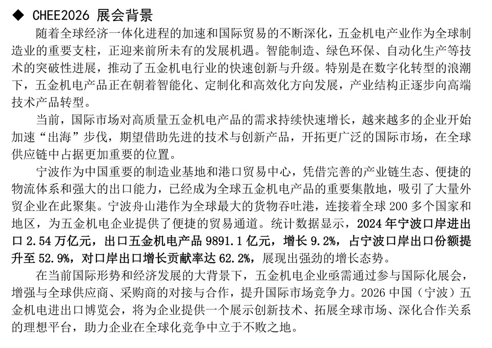 中国(宁波)五金机电进出口博览会暨外贸采购与出海发展高峰论坛