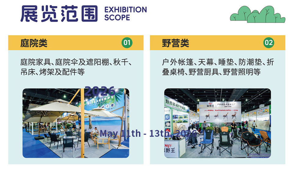 2025中国(义乌)国际户外庭院营地用品博览会(以下简称“义乌户外庭院营地展”)于6月13日至6月15日在义乌国际博览中心圆满举行。本届户外用品展以市场需求为导向,重点展示户外用品在现代消费市场中的重要性,参展企业243家,设国际标准展位656个,展览面积达1.3万平方米,展品品类涵盖庭院类、野营类、旅游装备类、体育用品类、营地类、雨具类、其他综合类等。2026中国(义乌)国际户外庭院用品博览会将于2026年5月11日至13日在义乌国际博览中心举行,计划国际国际标准展位800个,展览面积2万平方米,预计到会采购商及观众5万人次。
