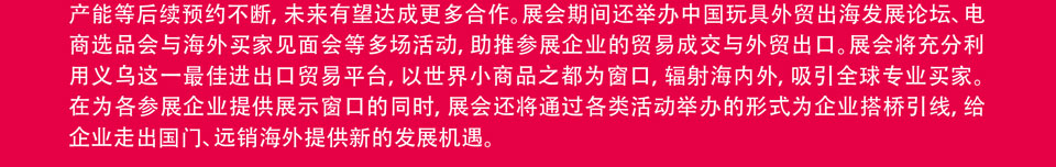 展会同期还将举办跨境电商选品大会以及国际IP授权对接会一系列高端论坛与精彩活动,活动分别邀请国际知名市场分析机构、头部品牌负责人分享行业洞察;发掘本土原创设计力量,为产业注入新鲜血液,给海外买家与国内工厂提供精准高效的配对服务;搭建IP方与制造方的合作桥梁,推动IP价值变现。