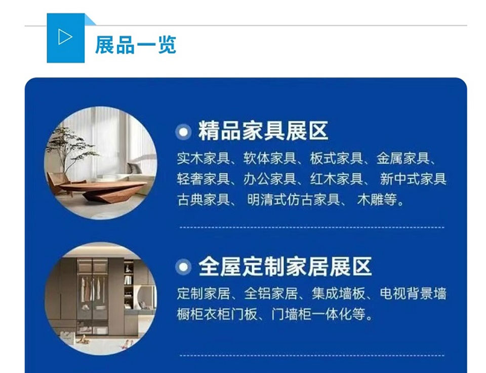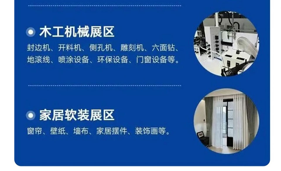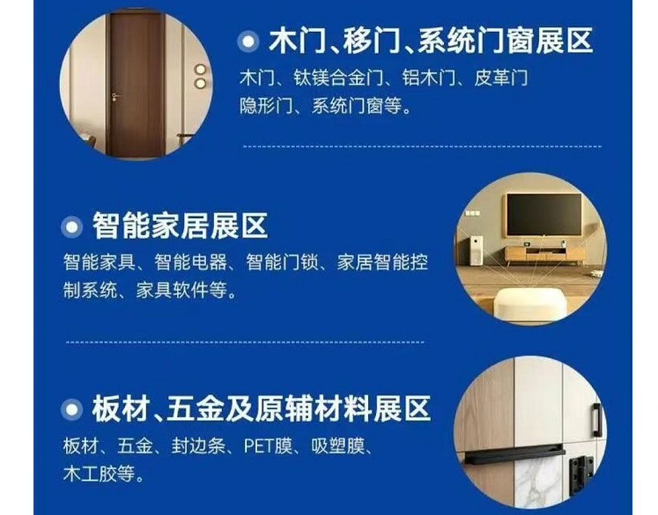 精品家具、全屋定制、木门、移门、系统门窗、智能家居、板材、五金及原辅材料、木工机械
