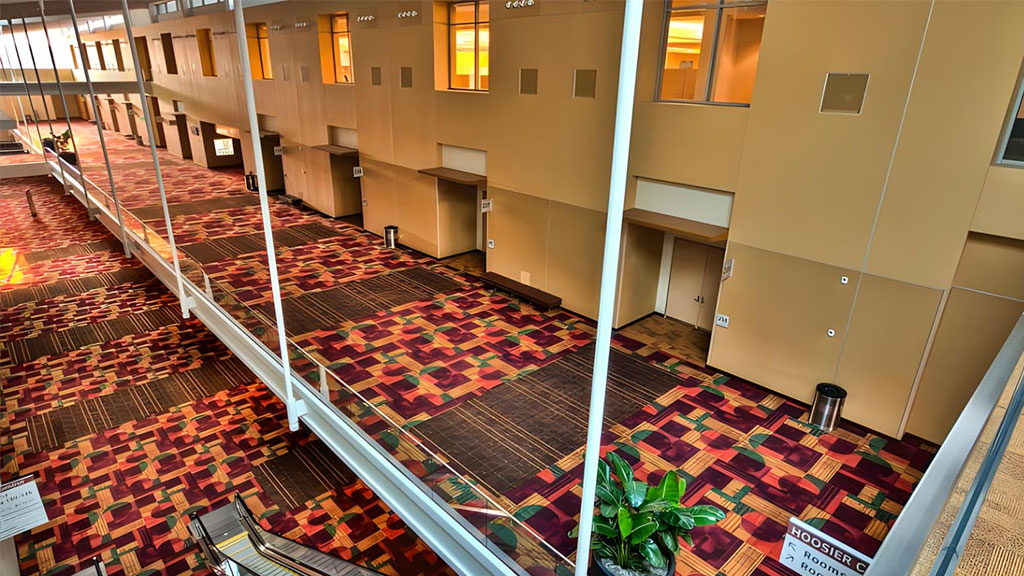 印第安纳展览会议中心坐落于印第安纳波利斯市中心,地理位置优越,紧邻市区的主要酒店、餐饮设施和购物中心。该场馆还通过封闭的步行天桥与多家酒店以及卢卡斯石油体育场相连,极大地方便了与会者的出行与住宿需求。距离印第安纳波利斯国际机场仅需约15分钟车程,交通极为便捷。
