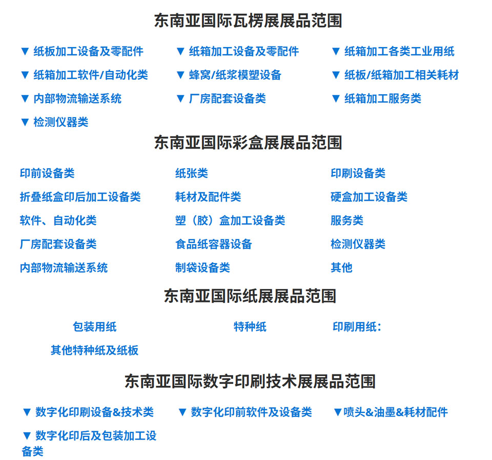WEPACKSOUTHEAST ASIA东南亚包装工业博览会由励展(中国)主办,与WPO(世界包装组织)战略合作,以东南亚包装印刷市场的需求为基础。2026 WEPACK SOUTHEAST ASIA 东南亚包装工业博览会将立足印度尼西亚,辐射东南亚地区和整个亚洲,展览将包括2026东南亚国际瓦楞展、关于瓦楞包装加工的2026东南亚国际彩盒展和2026东南亚国际数字印刷技术展览会等。