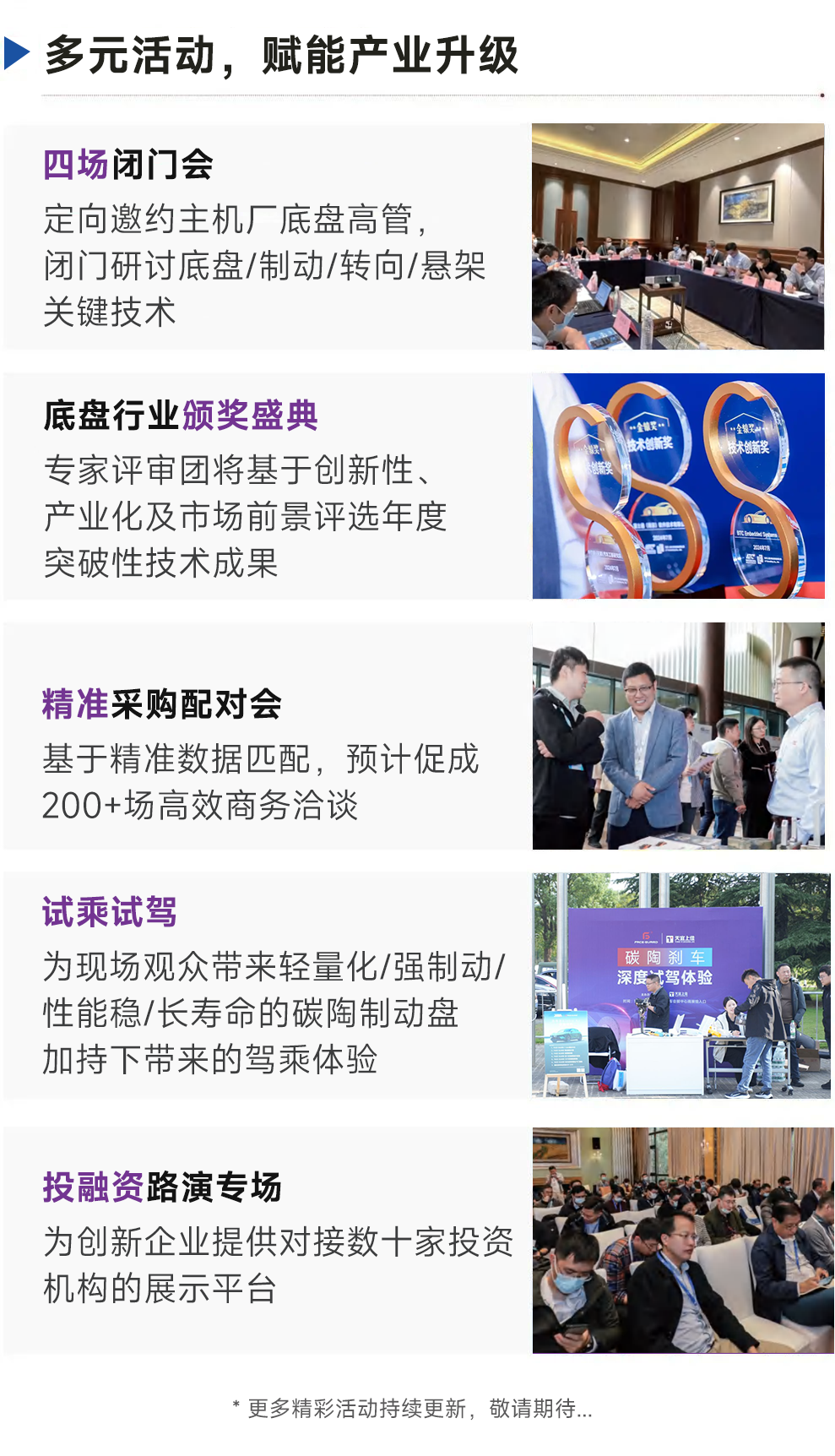 展会同期将举办8场高端技术峰会,聚焦制动、转向、悬架、智能底盘、产业链数智化、商用车底盘、底盘轻量化及48V系统八大领域,设置200+前沿技术议题。