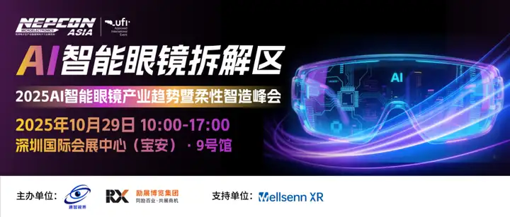 本届展会聚集影目、谷东、唯酷、大朋vr等众多AI智能眼镜终端厂商汇聚,立体呈现从光学技术 、芯片与计算能力、传感器、交互技术、电池技术、轻量化材料等核心部件到终端应用的前沿新品,为企业与广大观众产品创新及研发提供更多的思考。展区配有2025AI智能眼镜产业趋势暨柔性智造峰会,多位AI智能眼镜知名企业领袖及代表,深入分析智能眼镜产业生态及柔性制造技术,为广大观众揭秘智能眼镜产业技术底层逻辑与发展趋势,撬动智能眼镜蓝海商机!