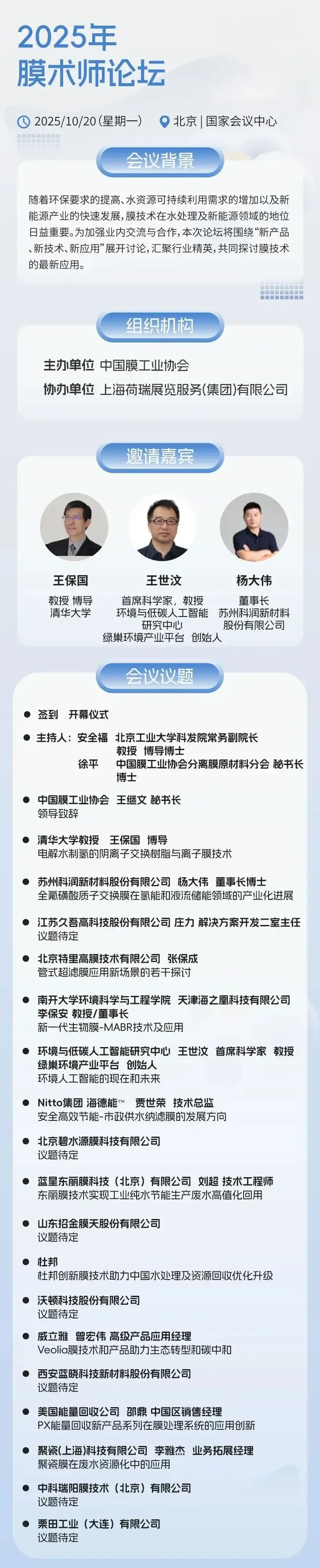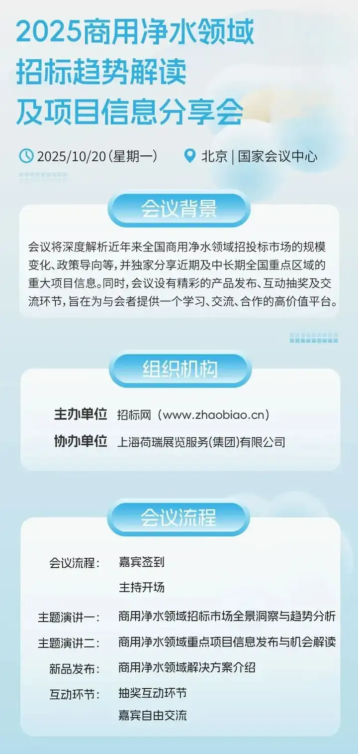 无论是寻求前沿技术合作、拓展华北市场渠道,还是洞察行业发展趋势,2025北京水展都是水处理领域从业者不可错过的年度契机。诚邀各界人士届时莅临现场,共探水处理产业新机遇,携手书写绿色发展新篇章。