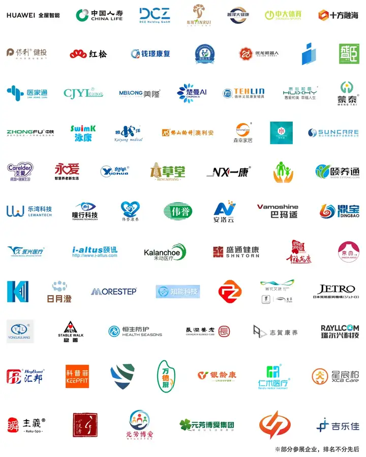 华为、保利健投、中国人寿、越秀银幸、胤瑞、红松、普泽、德控未来、中大体育、十方融海、青衣文旅、长润养老、乐湾、清澜、哈工天愈、东方、顺康达、凯洋、钱璟、德林、一康、优龙、京大、中资、四世同堂、中扶、知能、恒晋、伟誉、美隆、永久亮、万德厨、佑盾、永爱、中匠福、伊利诺、康辉、盛通、安吉盛臣、康惠等龙头企业将齐聚一堂。
