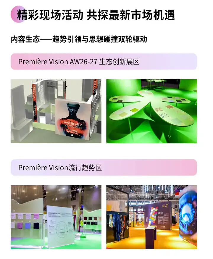 本届展会将以“供应链为基础、趋势为内核、创意为驱动”,在产业布局、内容生态、联动模式等维度实现全面突破,致力于打造兼具商业价值与行业引领力的生态平台。通过主题展区展示、时尚大秀、趋势发布、行业峰会等多元活动场景,构建覆盖纺织服装全产业链的时尚赋能平台,推动全球产业资源深度整合与创新发展。
