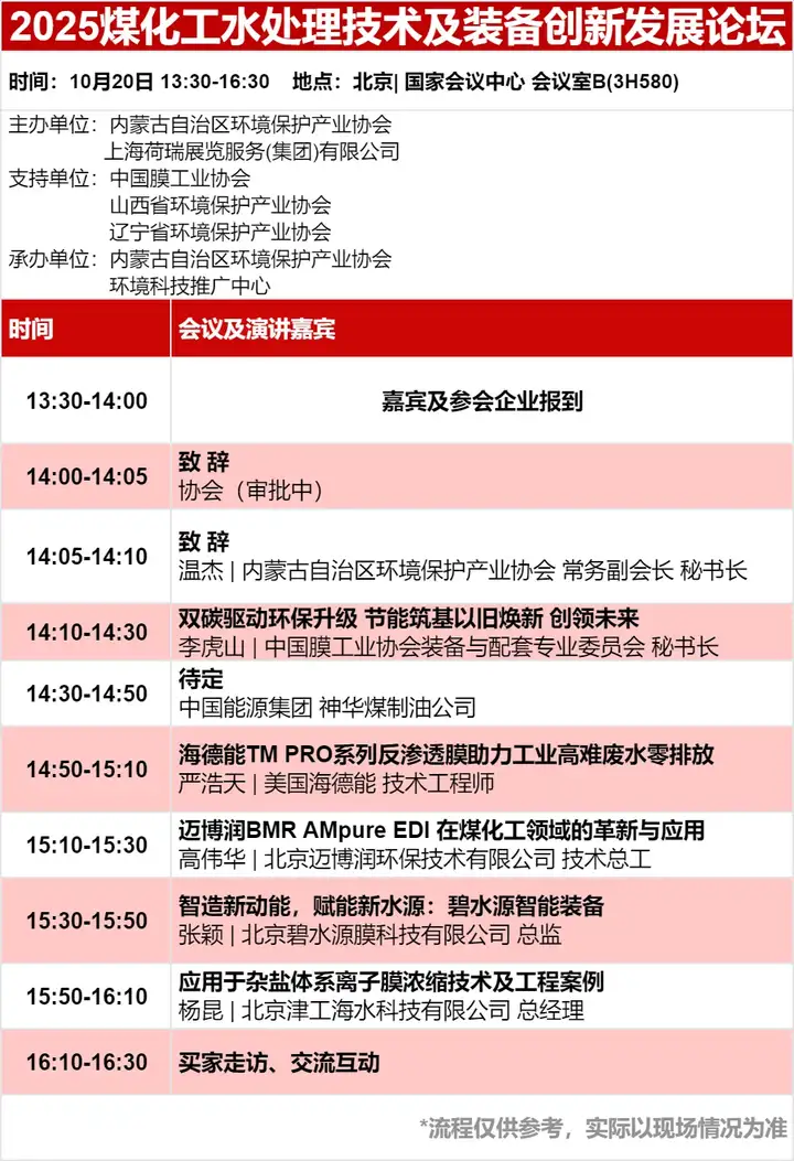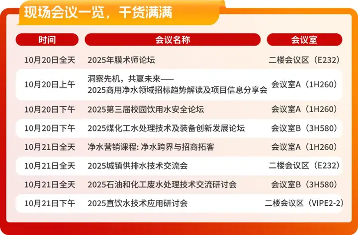 同期举办多场高端行业论坛,聚焦石油/化工绿色低碳技术、膜行业领先技术应用、煤化工水处理技术及装备、城镇供排水创新技术、商用净水招标解读、校园饮用水安全、管道直饮水、净水营销等前沿议题。展会致力于为华北水处理产业链的供应商、工程商、终端用户及科研机构提供高质量的商务合作机遇与行业趋势洞察!