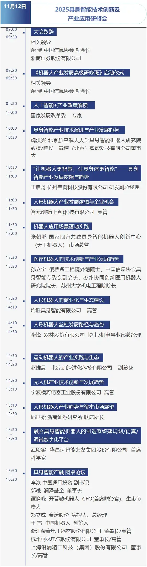 今年倾力打造的“具身智能技术创新及产业应用研修会”,将邀请宇树科技、均胜、智元创新等优秀企业,深度聚焦市场新兴领域与行业发展趋势,赋能企业精准把握智能技术迭代与产业升级的核心机遇。