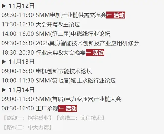 11月13日 SMM(第七届)稀土永磁研讨会活动时间 10:00-11:30