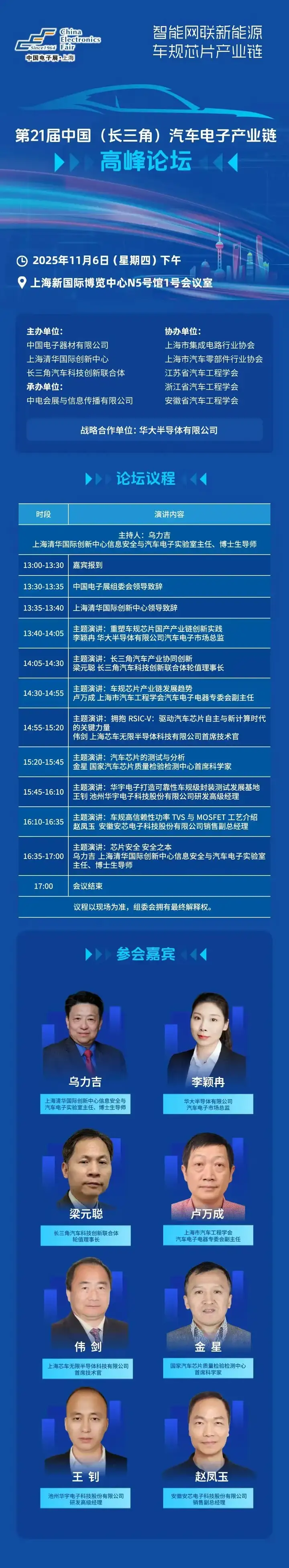 展览同期将举办多场论坛,聚焦半导体设备、集成电路、汽车电子等主题,现为您提前揭晓部分论坛议程,助您高效规划观展行程: