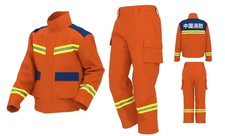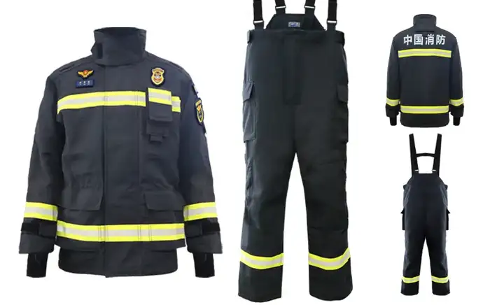 可调背带式下裤:下裤采用可调节背带设计,能灵活适配不同体型,确保消防员在剧烈活动中动作自如,兼顾防护性与舒适性。