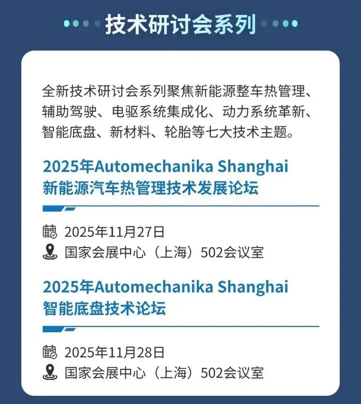 2025年Automechanika Shanghai上海国际汽车零配件、维修检测诊断设备及服务用品展览会将于11月26日至29日在国家会展中心(上海)盛大举行。本届展会将首次启用展馆全部空间,汇聚40多国7,000余家参展商及15个境外国家及地区展团,全方位呈现汽车产业生态与前沿趋势,携手全球业界人士共同探索创新路径、把握产业转型中的战略机遇。