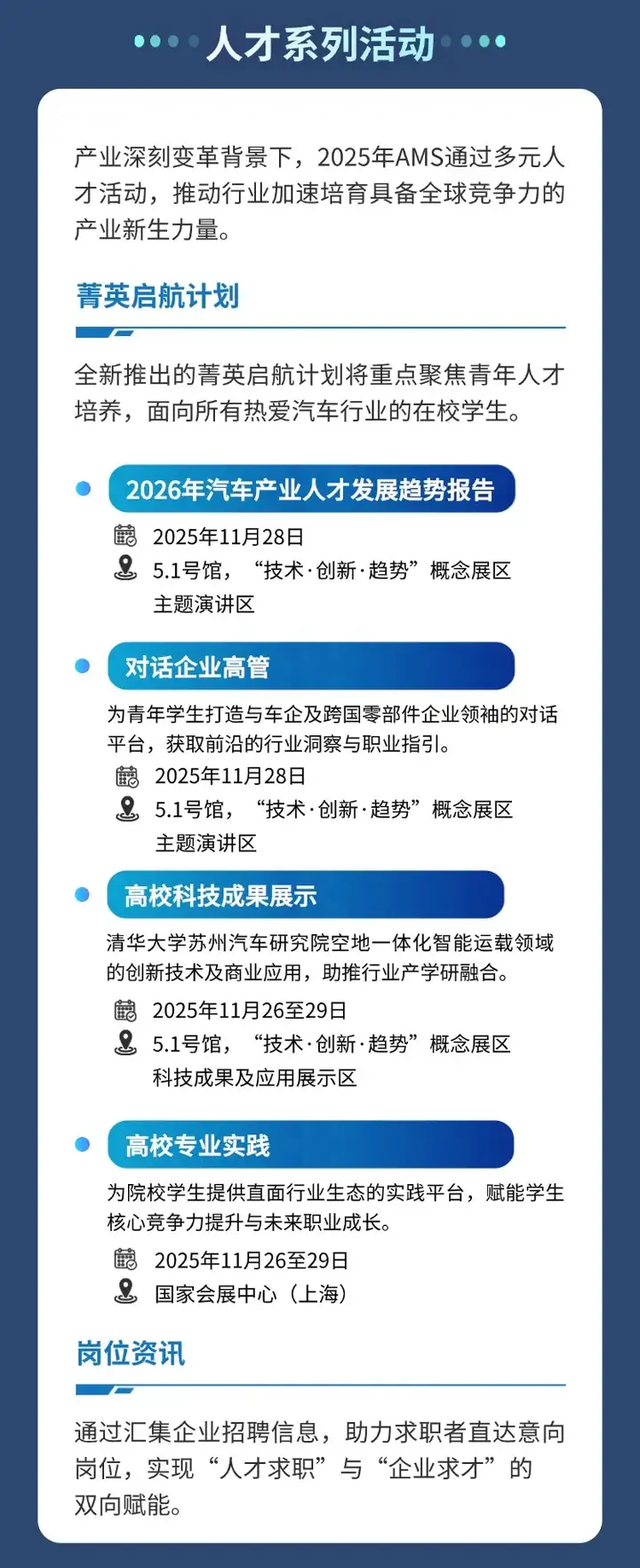 该专区设有30余场精彩演讲,聚焦汽车创新趋势,围绕六大主题:汽车AI应用、数字化升级、能源革新、可持续发展、汽车+、跨国投资及全球合作系列活动,深入探讨具身智能、智能座舱、替代燃料、汽车与低空经济以及机器人融合发展等热点议题。通过主题演讲与圆桌讨论等多样形式,打造思想碰撞与智慧共享的平台,为行业突破与跨界融合提供前瞻性洞见。