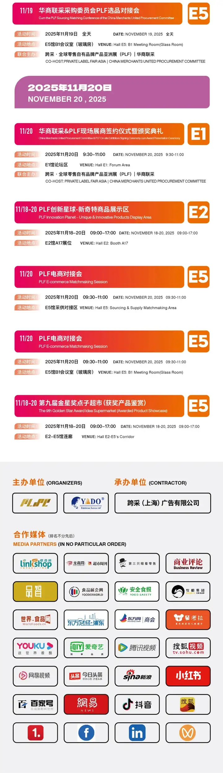 2025年11月18-20日,第十八届全球零售自有品牌产品亚洲展(PLF)将在上海新国际博览中心重磅启幕!这份超全观展指南涵盖入场流程、展区分布、现场活动、交通路线等核心信息,帮你提前规划行程、高效逛展,赶紧收藏备用~