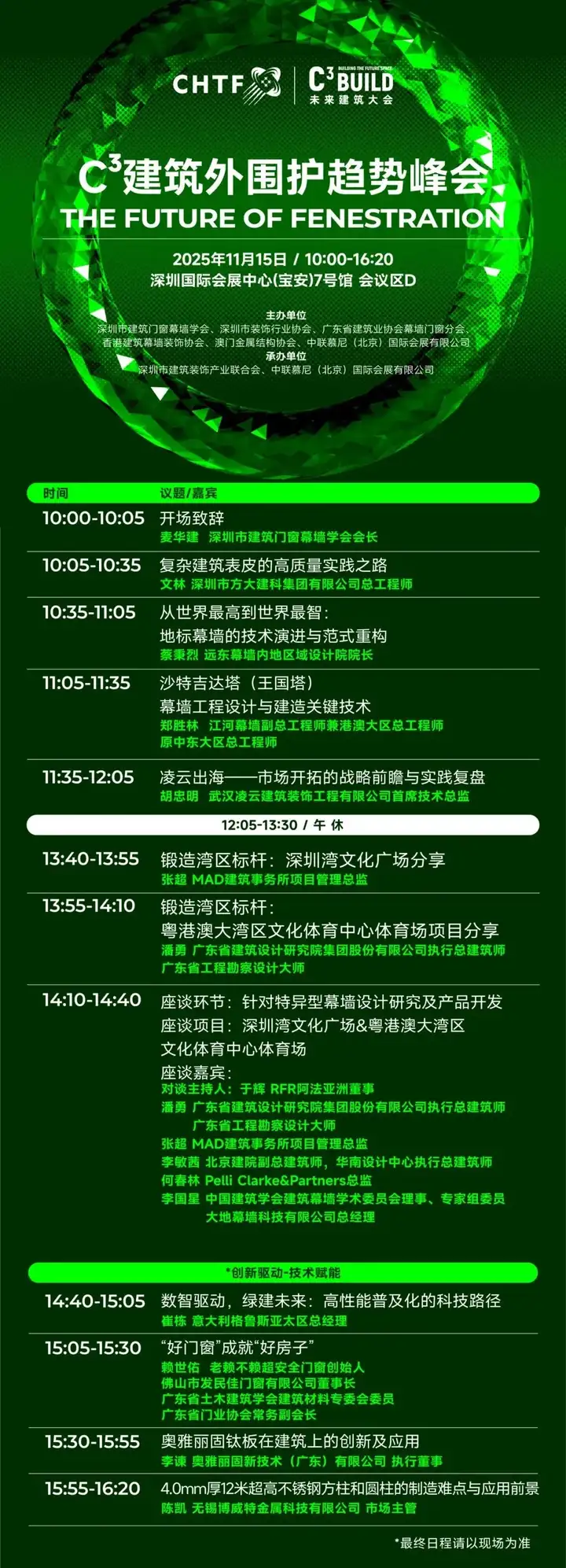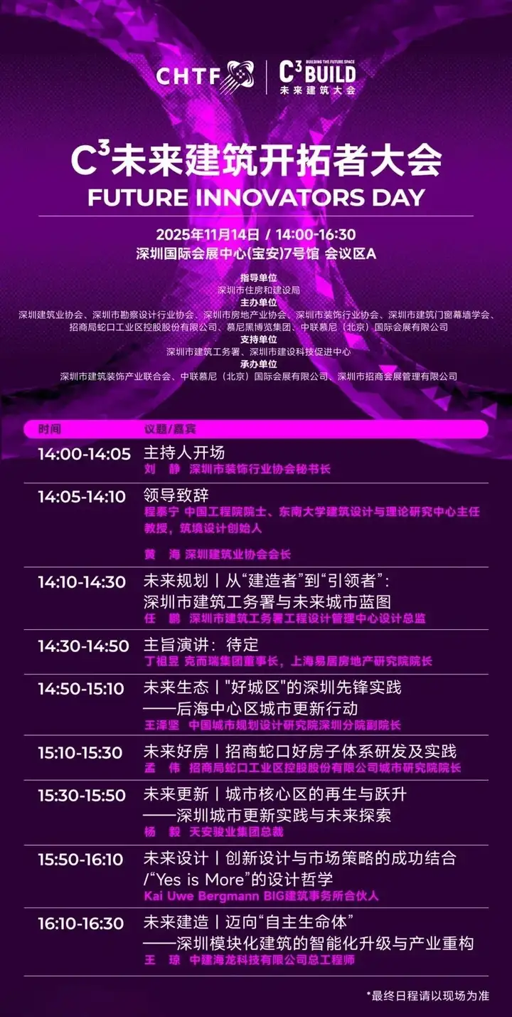 2025年11月14-16日,2025高交会-C³未来建筑大会将在深圳国际会展中心(宝安)7号馆重磅启幕!这份涵盖入场流程、展区分布、会议活动、交通路线的一站式实用指南,帮你高效解锁这场建筑全产业链盛会,赶紧收藏备用~