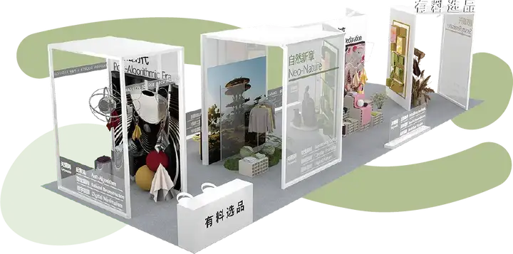 FS有“料”选品区以前瞻视角梳理流行脉络,通过艺术化的空间叙事与交互科技,将精选面料转化为一目了然、可直接应用的创意资源库,为设计师与品牌的产品研发提供切实有效的参考。本季围绕“自然新章”、“破序宣言”、“感知复兴”、“浮华之下”、“后算法时代”及“共燃”六大主题,覆盖时装、商务、休闲、运动四大场景,精选100家展商带来的300款前沿面料,系统推动设计创意向市场价值的有效转化。