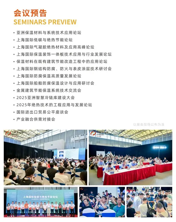 1. 趋势洞察——20+场高端论坛聚焦气凝胶、绿色工业建筑设计改造、防腐与保温、绝热与节能、智慧冷链等主题,行业专家和企业领袖分享经验,探讨全球保温绝热市场的发展趋势和技术创新。