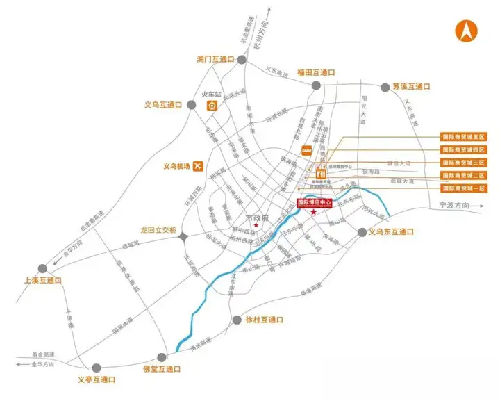 🔘 可乘坐机场专线1号线至银都酒店(票价2元),再乘出租车前往义乌国际博览中心(车费约10元)