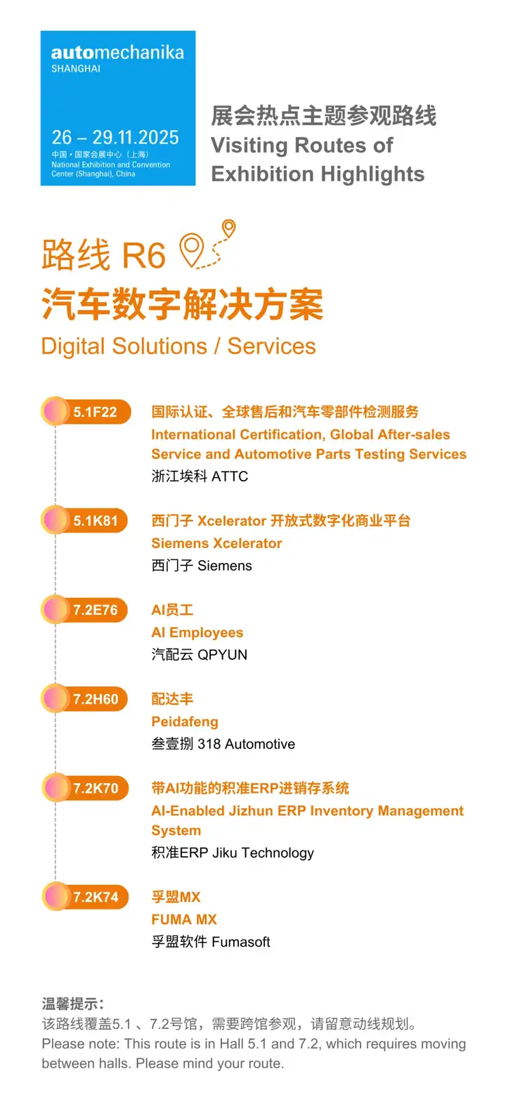 该路线集中呈现电动汽车维保全流程专业设备、高效检修工具以及覆盖多车型与多场景的高性能轮胎、轻量化高强度轮毂等产品,全面展示其在系统化维保解决方案与前沿轮上科技方面的创新成果。