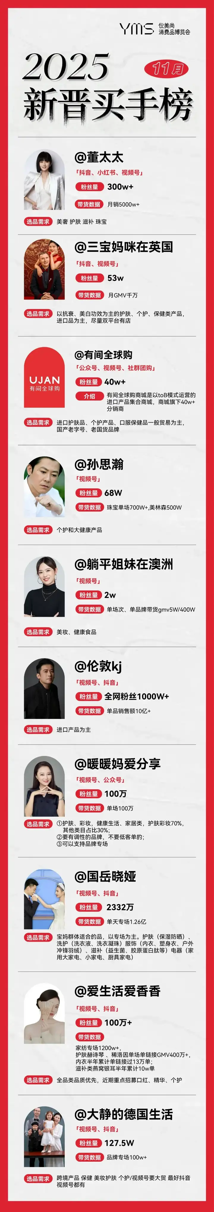 为助力参展客户提前锁定心仪合作对象、精准布局合作蓝图,仪美尚数据中心再度重磅发力,正式发布平价彩妆榜单、优质社交电商推荐榜、养出发财手黑马榜、宝藏小众私域榜、新晋买手榜(11月)等多个年度权威榜单。