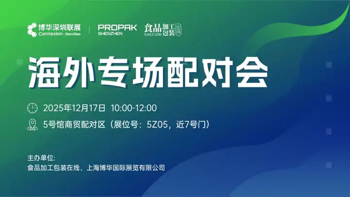 2025深圳食品及加工包装展览会(ProPak Shenzhen)将于12月16-18日在深圳国际会展中心(宝安新馆)盛大举办!30万㎡超大展区、智能加工机械、创新包装材料、预制菜生产线…… 超多硬核展品与精彩活动已就位,这份逛展攻略请务必收好,助你高效解锁展会亮点!