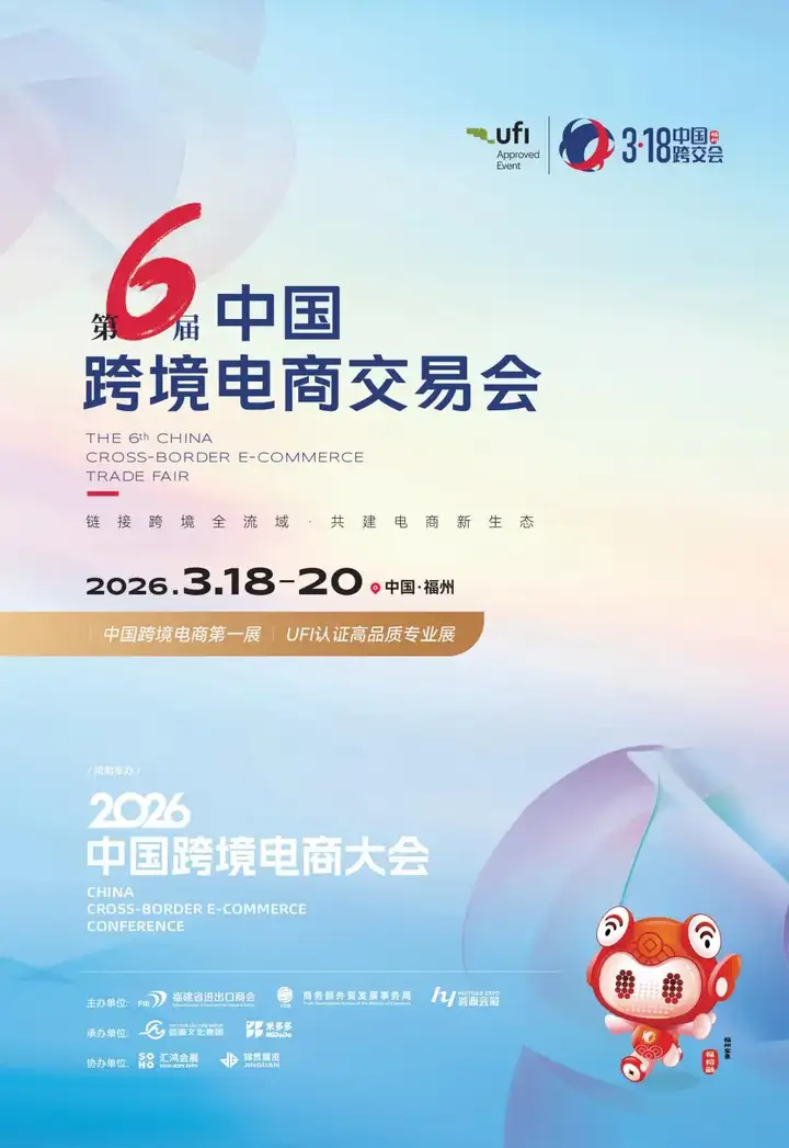 从源头好货到平台赋能,从趋势论坛到精准对接,第六届中国跨境电商交易会为你打造一站式跨境电商服务平台。2026年3月18日-20日,福州海峡国际会展中心,邀你共探行业新机,共享跨境红利!