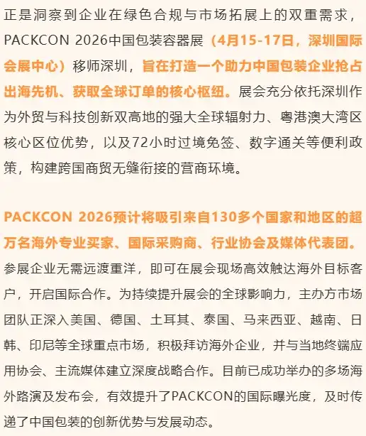 【4月·深圳】PACKCON 2026中国包装容器展:为包装企业打通出海快车道!