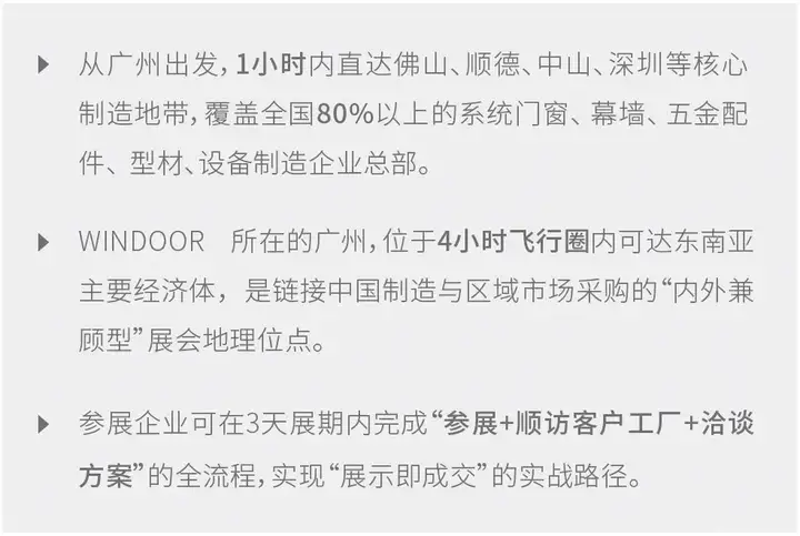 2026年3月11-13日,第32届 WINDOOR 门窗幕墙新产品博览会携全产业链资源落地广州保利世贸博览馆,同期举办阿尔法建筑大会,深度链接珠三角门窗幕墙产业带,汇聚400+优质展商、超6成精准采购决策人,助力企业高效锁定年度订单、抢占行业发展先机。