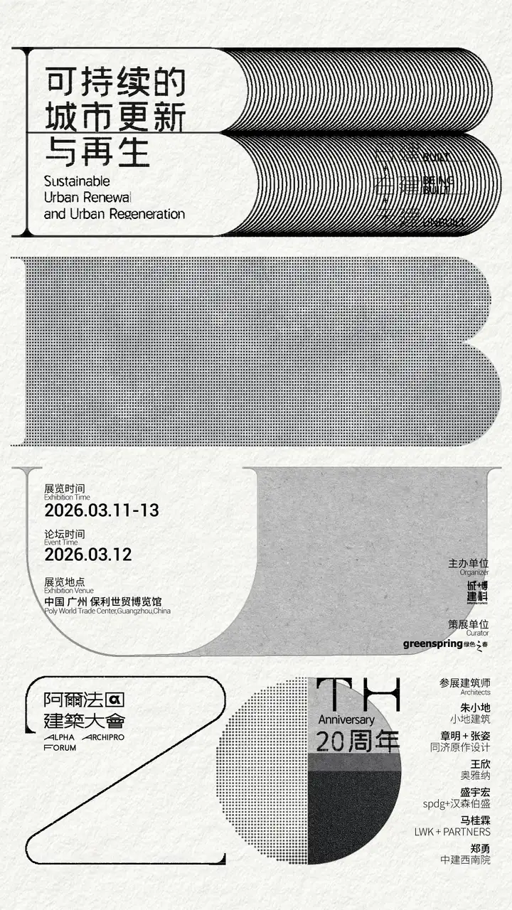 2026阿尔法建筑大会,将于3月11-13日在广州保利世贸博览馆举办,同期联动 WINDOOR 第32届门窗幕墙新产品博览会,以 “可持续的城市更新与再生” 为核心主题,聚焦建筑新设计、新技术、新材料与城市更新实践,是建筑行业上下游专业人士的年度盛会。