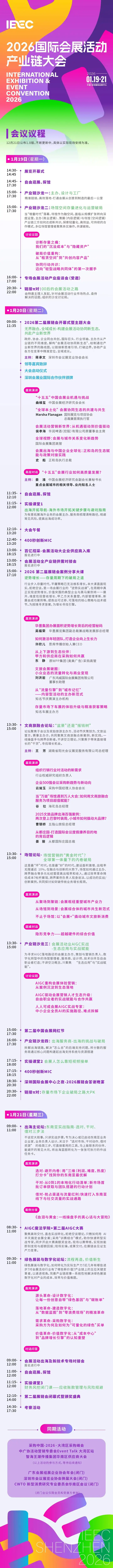 上午:主论坛【无界融合,全域成长】+五大主旨演讲+实操课堂·出海避坑指南下午:百亿招采入库+全产业链供需对+六大分论坛+中国 会展网红节+实操课堂·供应链优化、最新AI工具应用晚上:深圳国际会展中心之夜