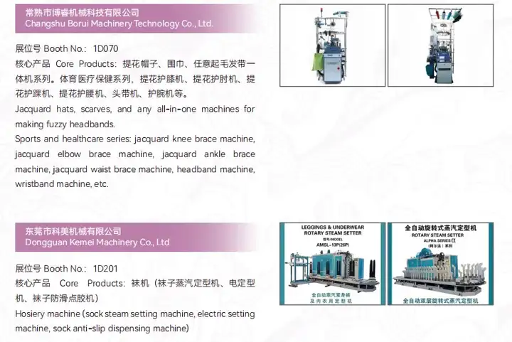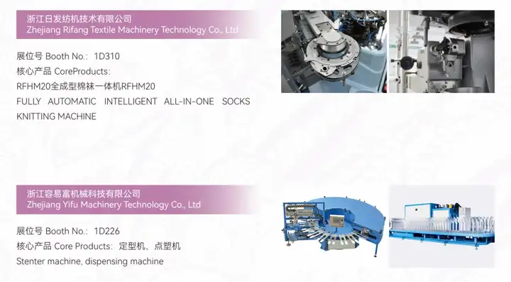 智能装备及其它配套服务展区:将展示贯穿整个袜子生产线的新型智能生产设备和技术。