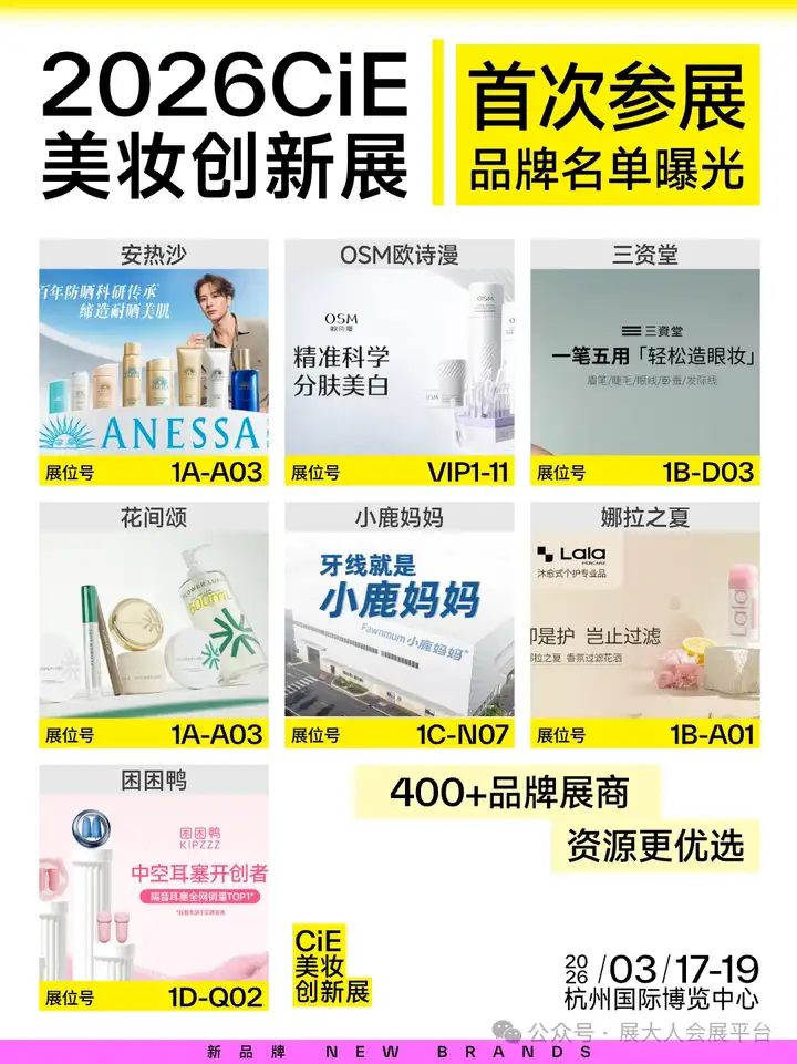 当美妆行业告别 “大而全” 的规模竞赛,一场 “小而专” 的精准深耕革命正在悄然上演!2026 CiE美妆创新展将于3月17-19日登陆杭州国际博览中心,超400+品牌同台竞技的舞台上,这批首次参展的 “专精特新” 选手,藏着美妆行业下一个风口的答案。告别同质化内卷,它们如何用 “小而专” 的打法突围?这份首发名单,带你提前解锁!