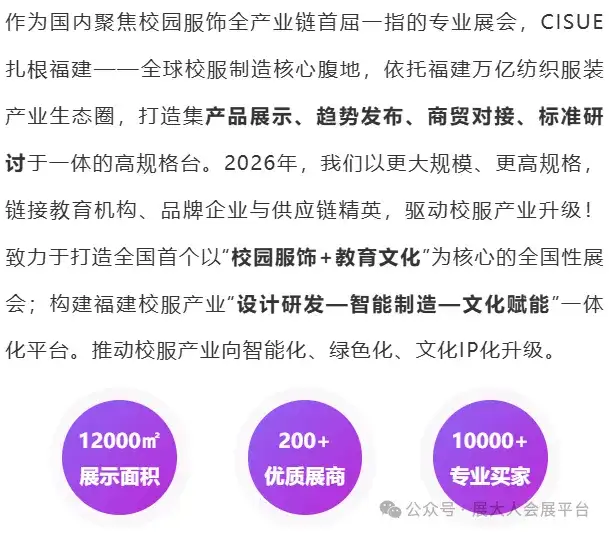 谁懂啊!CISUE 2026福建石狮校服展3月启幕,承包你的校园穿搭新灵感~